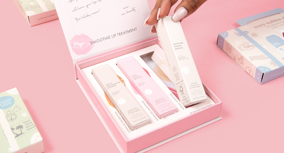 For these products, I focused on designing cohesive packaging for two of ESW Beauty’s lip treatment lines. I created the Smoothie Lip Trio and Berry Kisses Trio sets to showcase the products together as a complete experience, highlighting their unique personalities while keeping the design playful, colorful, and irresistible.